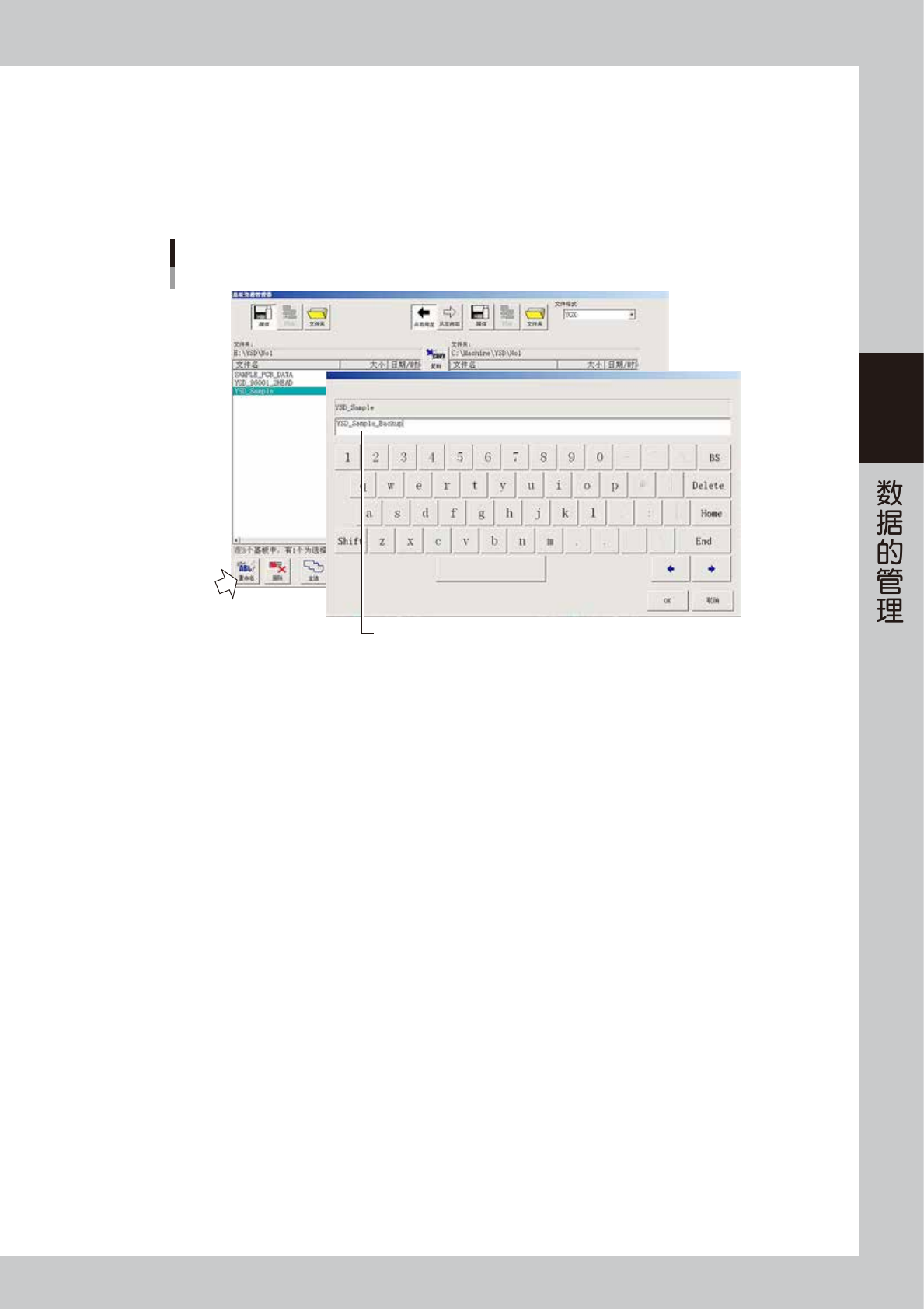 2. 按左下方的 [ 重命名 ] 按钮后,显示键盘对话框。