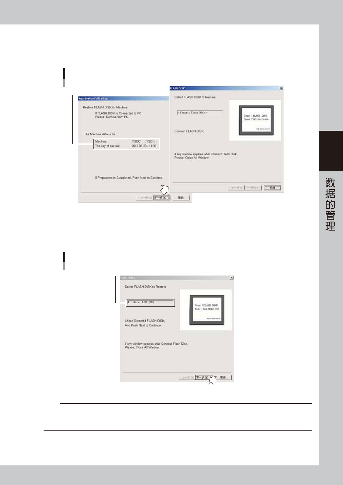 此处,介绍使用 USB 存储器将系统全备份的数据还原至闪盘的方法。