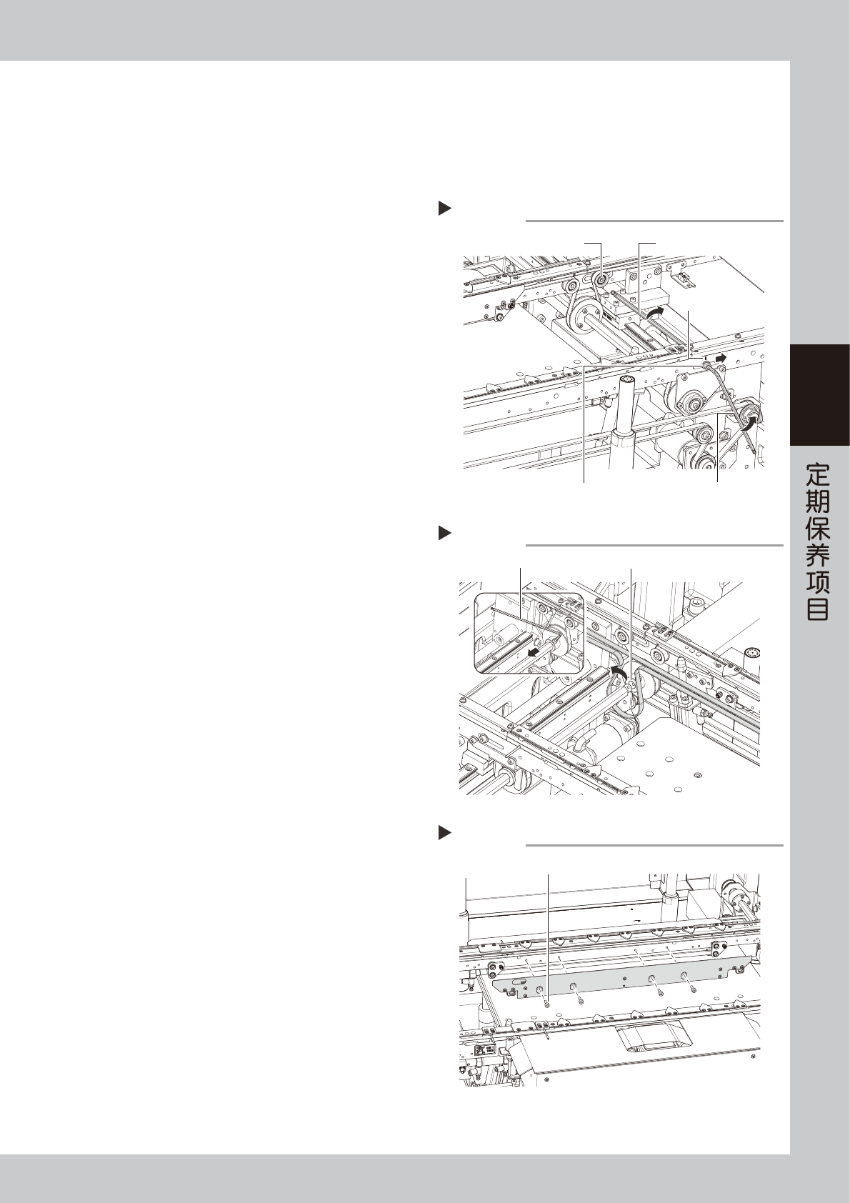拉紧螺栓的位置,并再次使传送带转动确认状态。