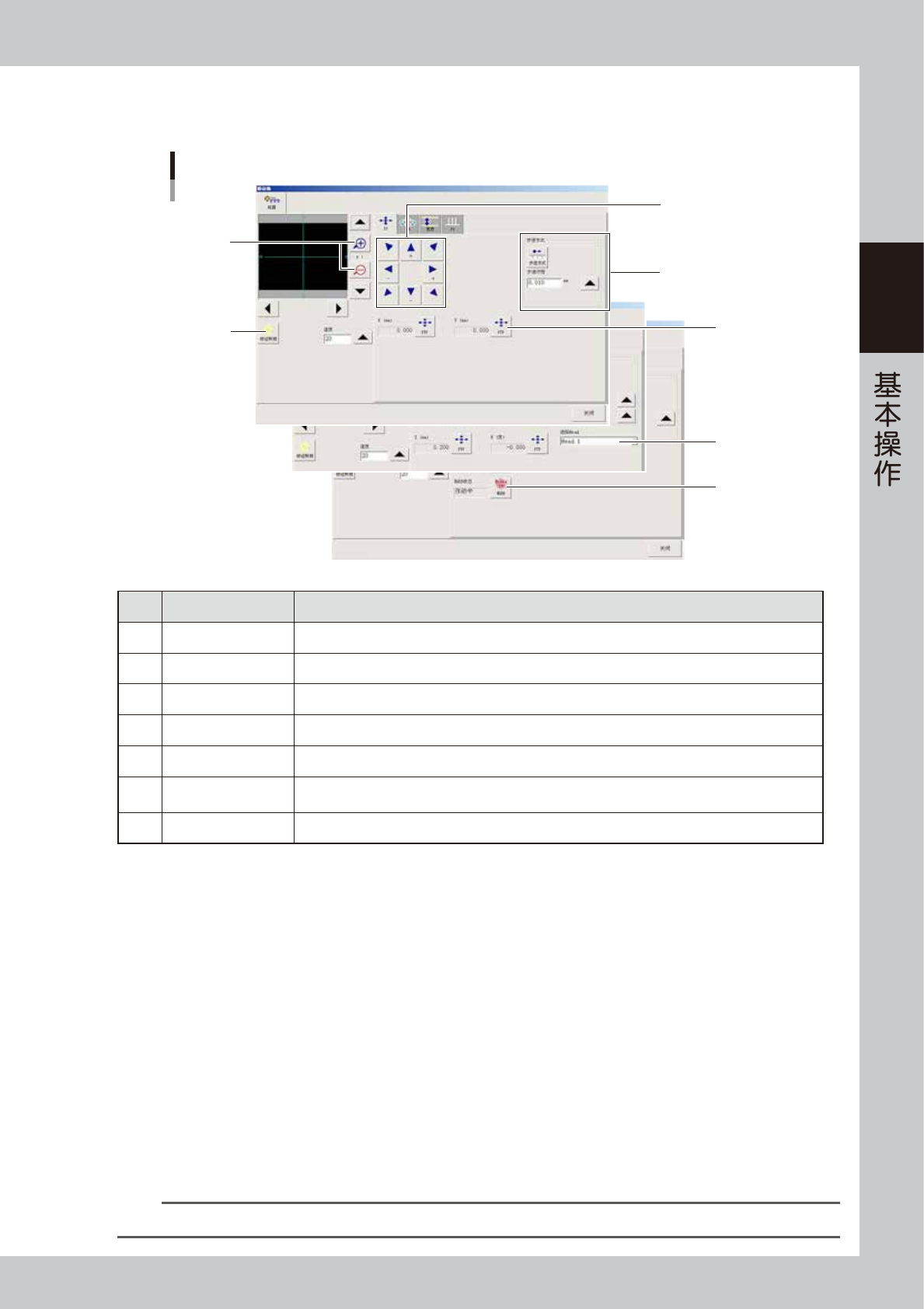2-10 2 ■ 点胶头手动操作画面 “装置”-“Head”选项卡画面 以3头型(选配)点胶头为例 2 1 3 4 66231-N7-00 项目、按钮名 功能 1 温度显示 显示点胶头的目标温度与当前的实际温度。 2 排气 按该按钮,可以进行吐胶。再次按该按钮,则关闭吐胶。 3 激光测高 按该按钮,可以通过激光高度传感器测量点胶位置的高度。 测高之前,需先按“生产设计”画面的 [ 激光复零 ] 按钮,使激光高度传感器复零之后再测量。…