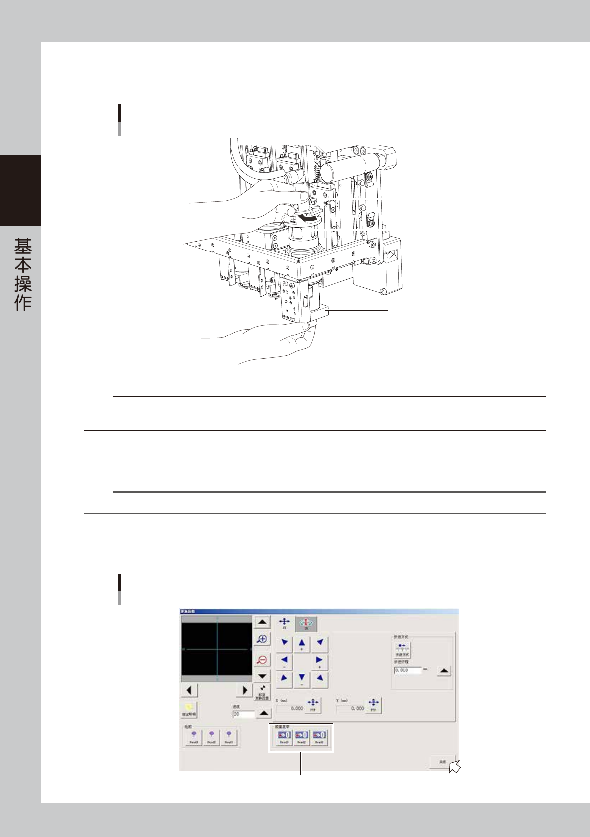 2-23 2 5 在点胶嘴上装上接头。 用六角扳手 (1.5) 将接头装在点胶嘴上。 6 给各点胶头安装点胶嘴。 1. 直接用手拿着点胶嘴或将点胶嘴插入专用管内,再对准点胶头前端的安装位置。 2. 将转轴侧的导向块与点胶嘴的切口对准之后,将点胶嘴插入点胶头。 3. 用手或专用管按住点胶嘴,旋转锁紧螺母固定点胶嘴。 点胶嘴 锁紧螺母 专用管 点胶嘴的安装方法 65203-N7-00 7 安装胶筒。 1. 先将胶筒装在胶筒适配器上。 2. …