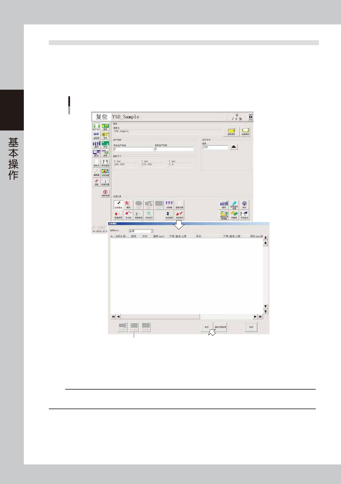 2-28 2 3.8 进行点胶测试 排出点胶嘴内的空气之后,需进行点胶测试,检查点胶状态。点胶测试根据基板程序中的预点胶信息进行。 下面,介绍进行点胶测试的方法。详细内容,请参照后述第 4 章“2. 点胶测试” 。 1 打开“点胶测试”画面。 按“生产设计”画面的 [ 点胶测试 ] 按钮,打开“点胶测试”画面。 “点胶测试”画面 [传入基板]按钮 66235-N7-00 2 进行点胶测试。 按“点胶测试”画面下部的 [ 执行 ] 按钮,…