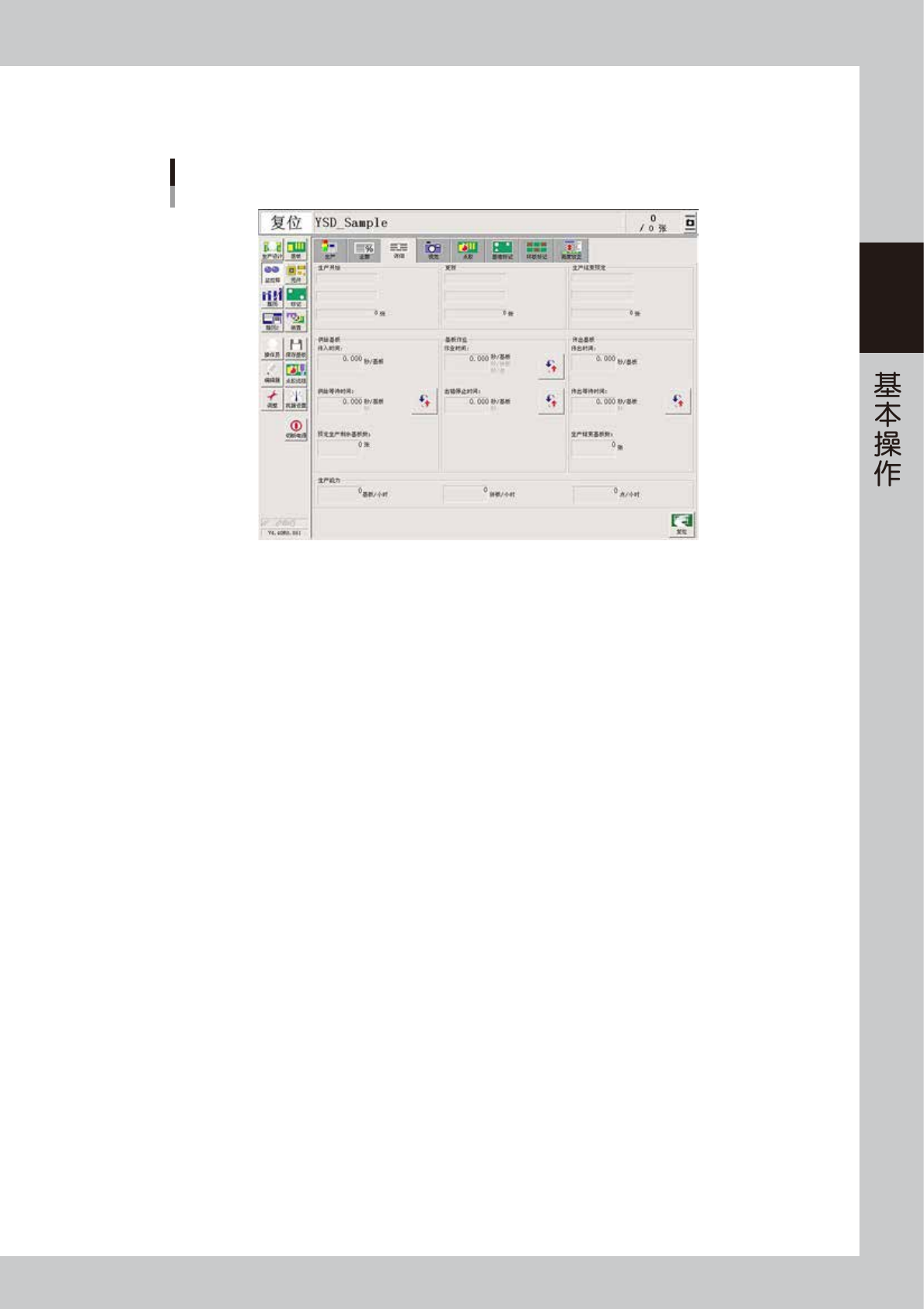 显示生产开始的时间 ( 选择完基板的时间 )。一般,张数显示框为“0”。