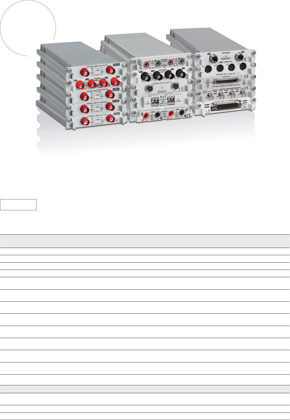 7 可使用 Max.27 单元 测量对象 型号 品名 通道 采样速度 频带 A/D 分辨率 DC 精度 最大 输入 最小 分辨率 (* 1) 最高灵敏 度 量程 绝缘 / 非绝缘 备注 电压 8966 模拟单元 2 ch 20 MS/s DC ~ 5 MHz 12 bit ± 0.5% f.s . DC 400 V 0.05 mV 100 mV f.s . 绝缘 - 电压 ( 多通道 ) U8975 4ch 模拟单元 4 ch 5 MS…