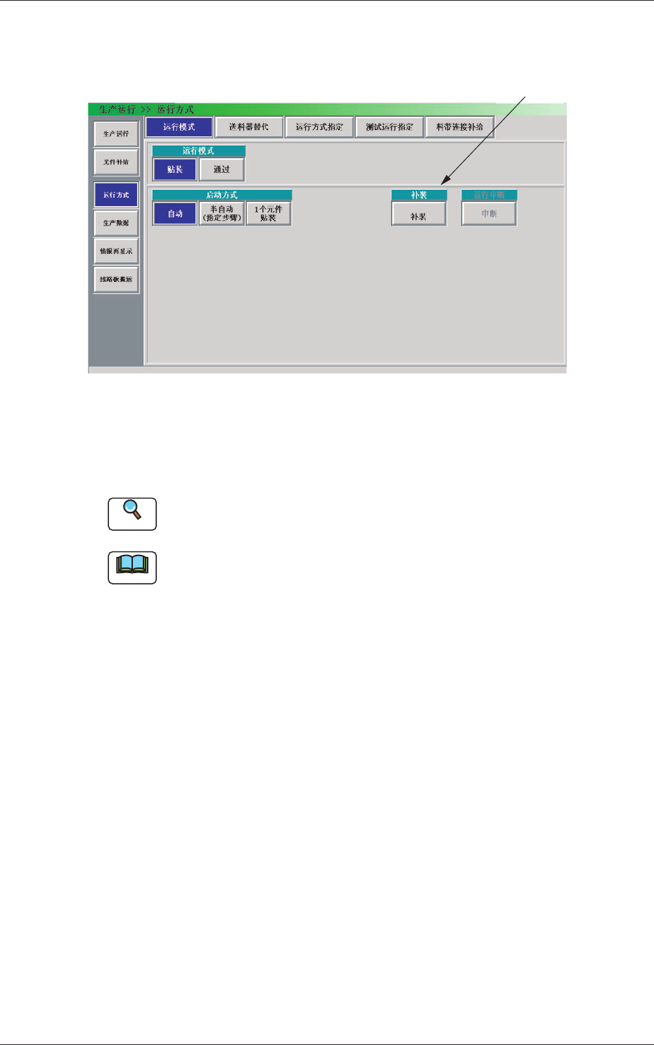若吸取前发生吸嘴确认异常,便可进行补装并显示 [ 补装 ] 按钮。