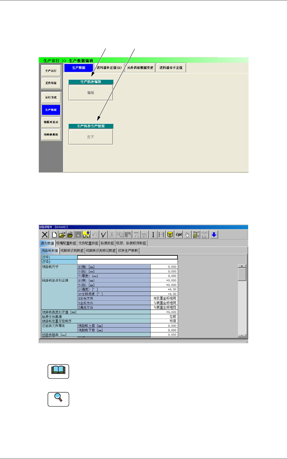 2-42 0710-001 5. “ 生产数据编辑 ” 界面 5. “ 生产数据编辑 ” 界面 在生产运行子菜单栏中,按 [ 生产数据 ] 按钮,便显示作为初始界面 的 “ 生产数据 ” 界面。 Fig.2B25 “ 生产数据 ” 界面 [1] 切换按钮 生产数据 可以进行当前生产机种数据的编辑。 送料器补正值 (B) 可以调整送料器补正值 (B)。 元件供给数据变更 可以简易变更生产机种的元件供给数据。 [2] “ 生产数据 ” 界面…