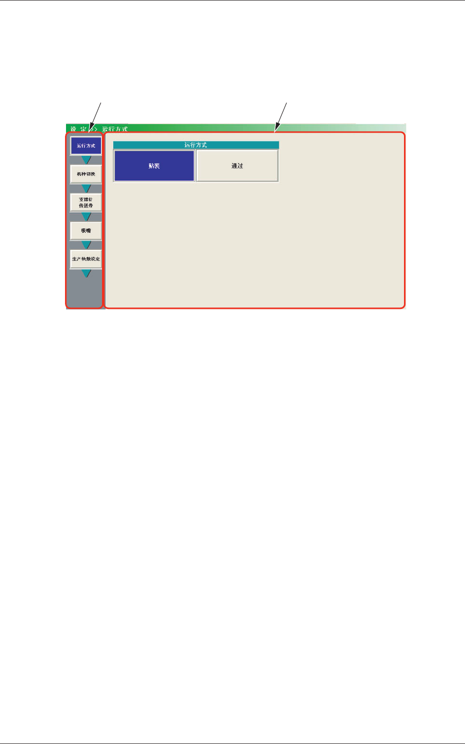 3-2 2. “ 设定 ” 菜单界面 在主菜单栏中,按 [ 设定 ] 菜单按钮,便显示 “ 设定 ” 菜单栏和作为初 始显示界面的 “ 运行方式 ” 界面。 Fig.2C2 “ 设定 ” 菜单界面 0710-001 2. “ 设定 ” 菜单界面 [1] [2]