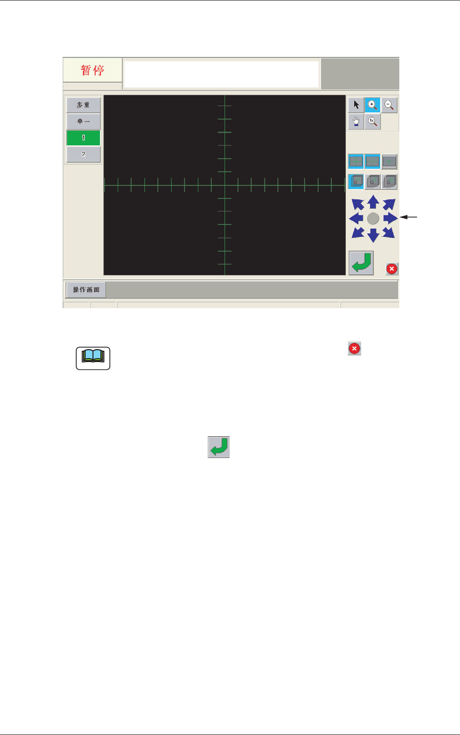 4-94 0710-001 6.4 吸取位置教示 (5) 按[执行目视对齐]按钮,便显示识别界面,可以进行目视 对齐操作。 图像移动 按钮 Fig.2D39-4 识别界面 Note 目视对齐对象没有被照相机抓拍到时,按识别界面的 按钮,返 回到 “ 目视对齐操作指南 ” 界面移动横梁。 (6) 用识别界面中的图像移动按钮移动,使目视对齐对象的偏心 吸取位置位于十字线的中心位置。 (7) 按识别界面中的 按钮确定位置。 关闭识别界面,返回…
