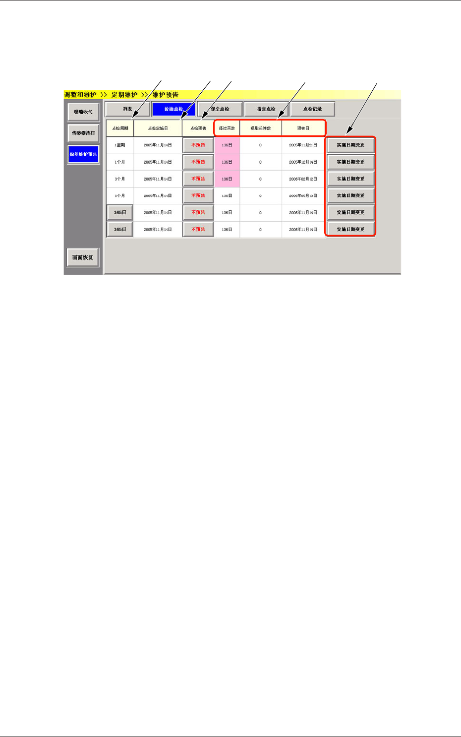 按下 [5] [ 实施日期变更 ] 按钮,显示设定的点检实施日。