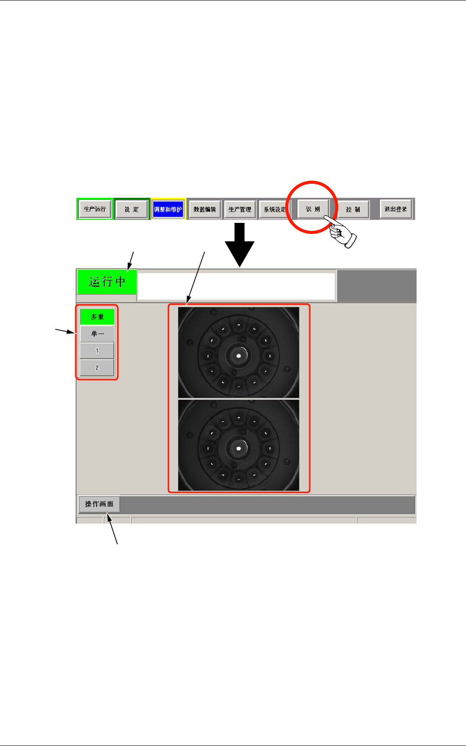 按操作界面主菜单栏中的 [ 识别 ] 菜单按钮,触摸面板的显示切换到