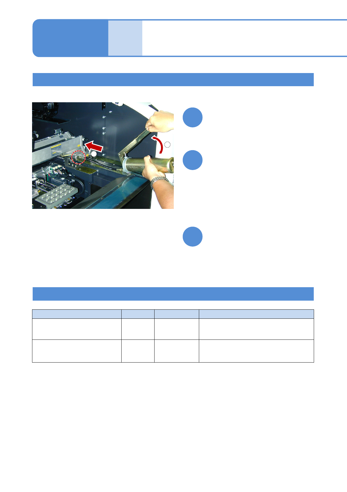 NPM-W 2 EJM7DC-MB-03M-0 0 油筒芯的安装方法 2 3 4 1 打开油筒芯的盖子, 插入卸下油筒状态的主体内 ●完全插入。 ( 若不完全插入,会漏出润滑油 ) 拉出油筒的链子 () , 上锁 () 把油筒芯放入油筒 () , 把油筒完全插入主体 () 从油筒孔把链子收起 () , 插入油筒内 () ●来回压杆 2 、 3 次,确认是否从喷嘴先端压 出润滑油 () 。 3-1 -2 杆 1 2 1 2 油筒芯 1 2…