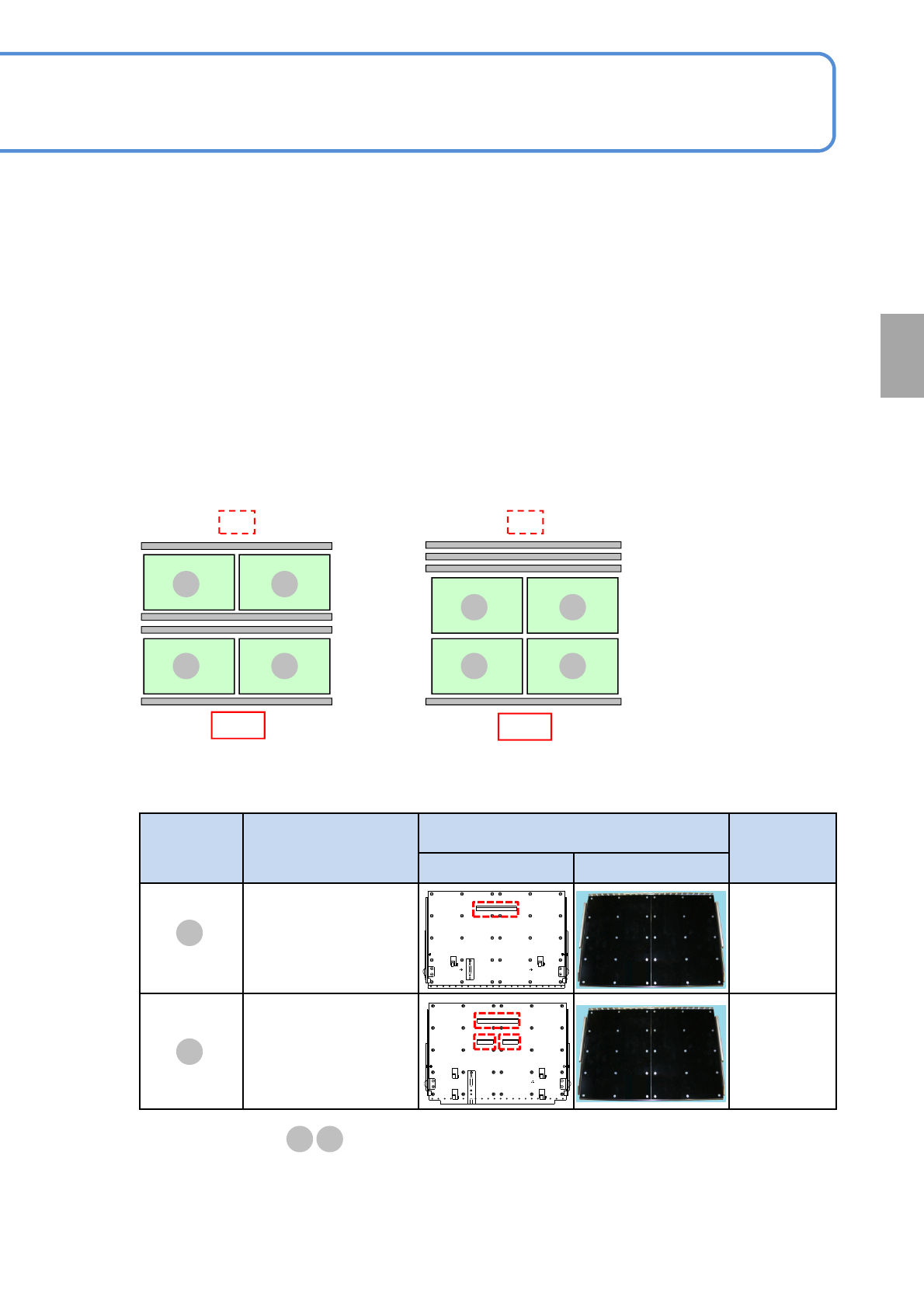 NPM-W 2 EJM7DC-MB-05M-0 0 5-3-2 -2 每 1 4 0 小 时 保 养 定 期 检 查 ■基板支撑块 ( 自动更换用 ) 时 ( 选购件 ) 时 ●单轨模式的配置 ●双轨模式的配置 前侧 前侧 后侧 后侧 如果错误安装基板区块 , E F 不可变更为单轨模式的配置。 E F E F E F E F F E 基板 支撑块 型号 基板支撑块的概略图 备注 背面 正面 N610145010AB 标准 N610…