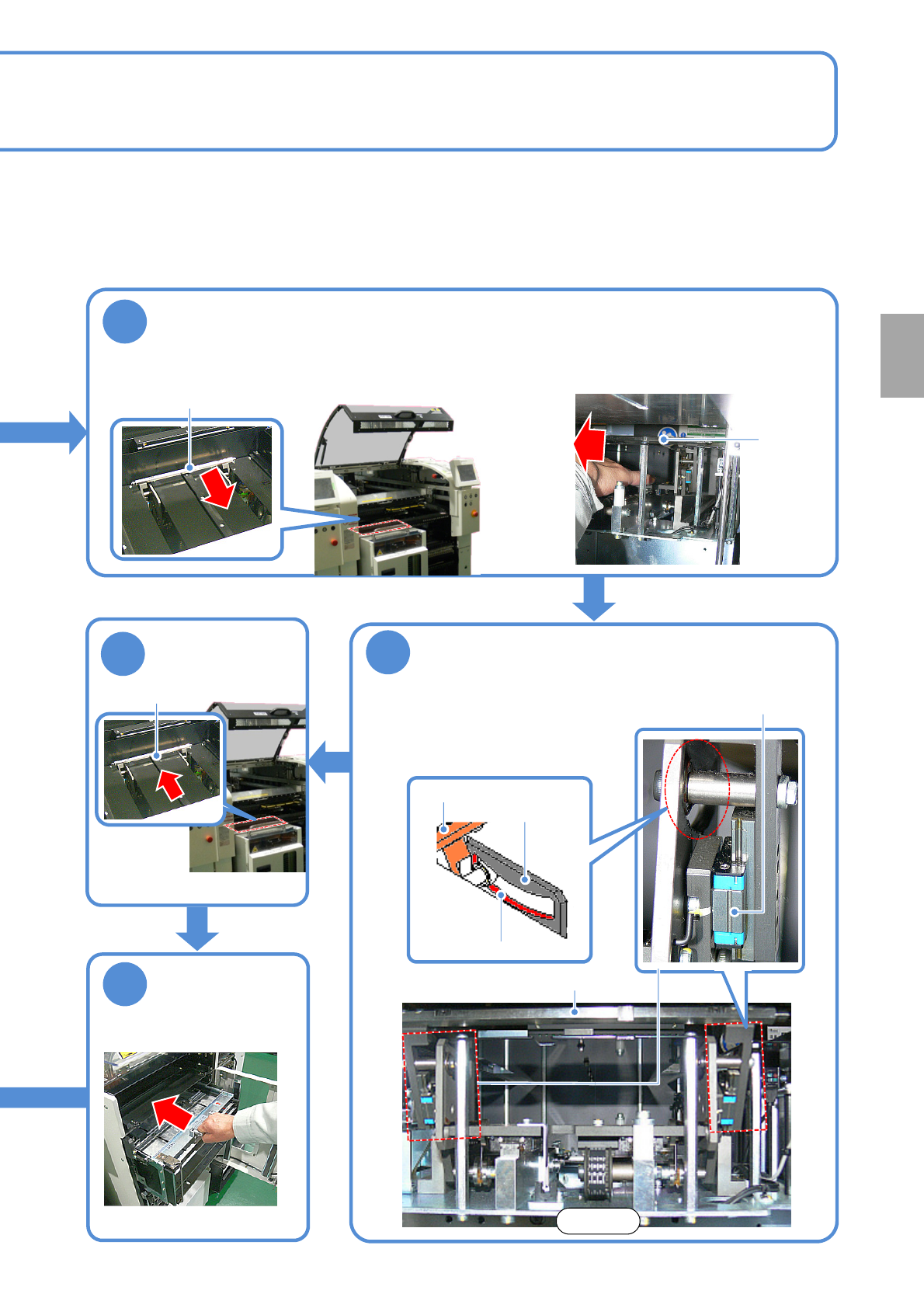 NPM-W 2 EJM7DC-MB-06M-0 0 托盘供料器 ( 选购件 ) 的润滑脂添加 2 6-13 -3 12 在托盘供料器拉出部的各部位添加润滑脂 ●双式托盘时, A/B 线性导轨 ( 左右 ) 凸轮块 ( 左 ) 的内侧 前侧 ●添加部位 ・ 线性导轨的轨道 ( 左右 ) ・ 凸轮块内侧 ( 左右 ) ●使用润滑脂 :LCG100 凸轮块 ( 右 ) 的内侧 18 ENABLING 19 约动作1分钟后 维修保养篇 6-13…