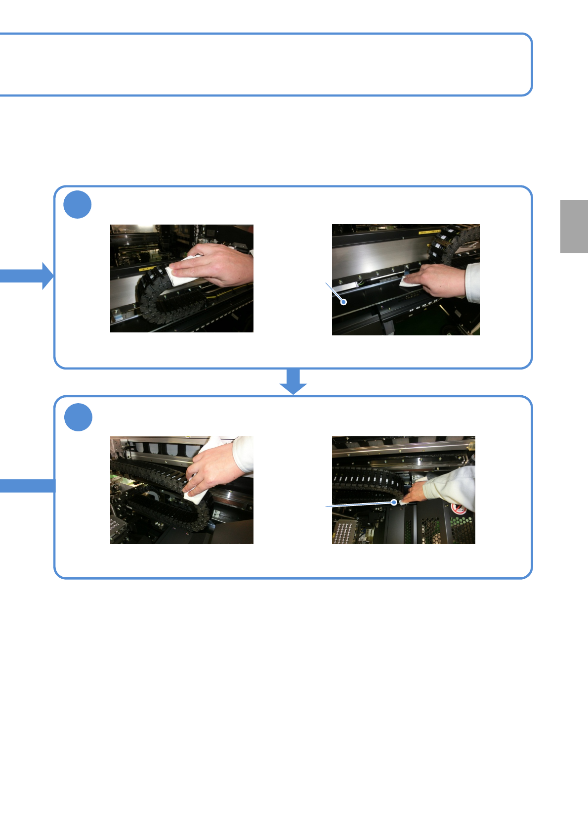 在这里对X轴和Y轴的电缆 支架的清扫步骤加以说明。