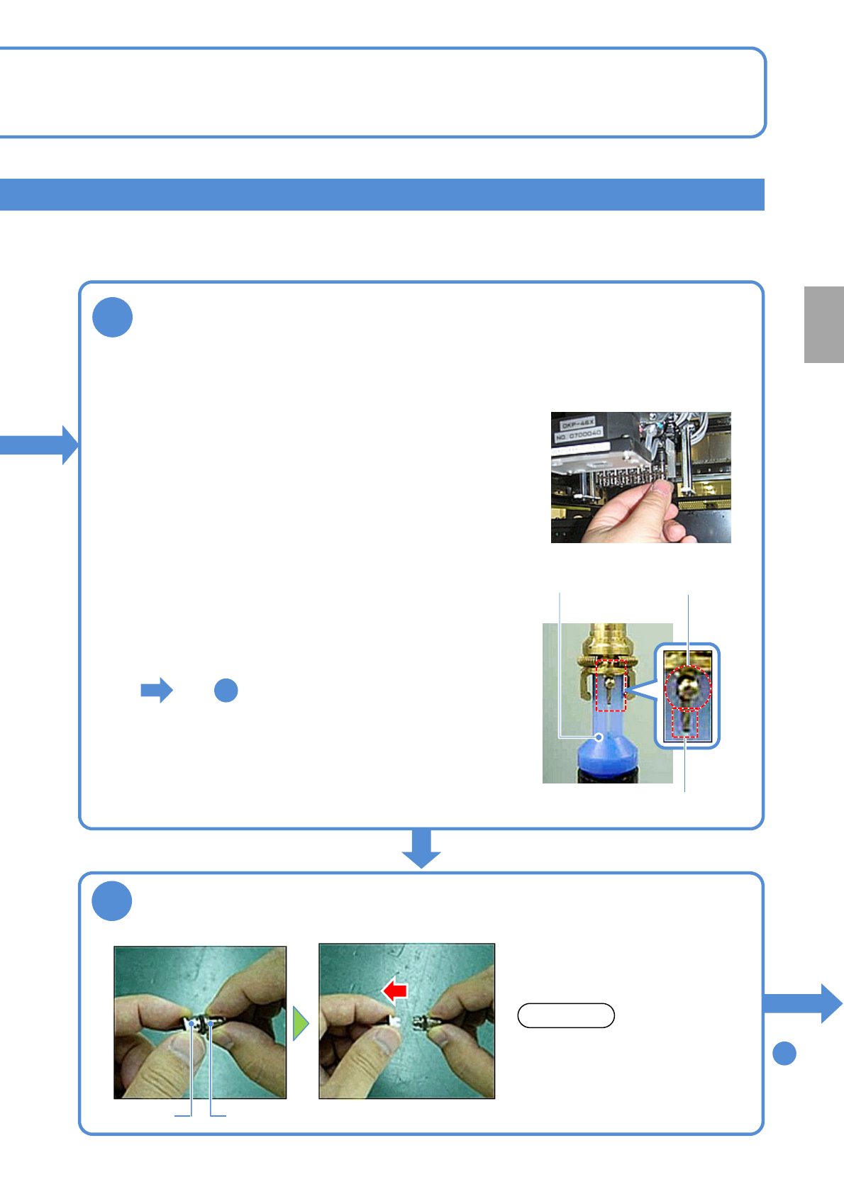 NPM-W 2 EJM7DC-MB-07M-0 0 顺序 5 7-1 -4 4 拔出吸嘴 吸嘴座 吸嘴 ●请笔直卸下。如果倾斜,夹具夹扣 可能会破损。 注意 3 卸下吸嘴座 ●按住吸嘴往上推,从下往上看,按 顺时针方向旋转。 ●请注意不要让吸嘴缓冲用弹簧弹出 来。 ●因夹具夹扣压紧用弹簧容易变形, 请勿用手指硬压。 ●按照相同步骤,在贴装头卸下所有 吸嘴座。 ■有吸嘴时 ●使用吸嘴座轴清扫工具 ( 选购件 ) 。 ●使 12 吸嘴清扫侧…