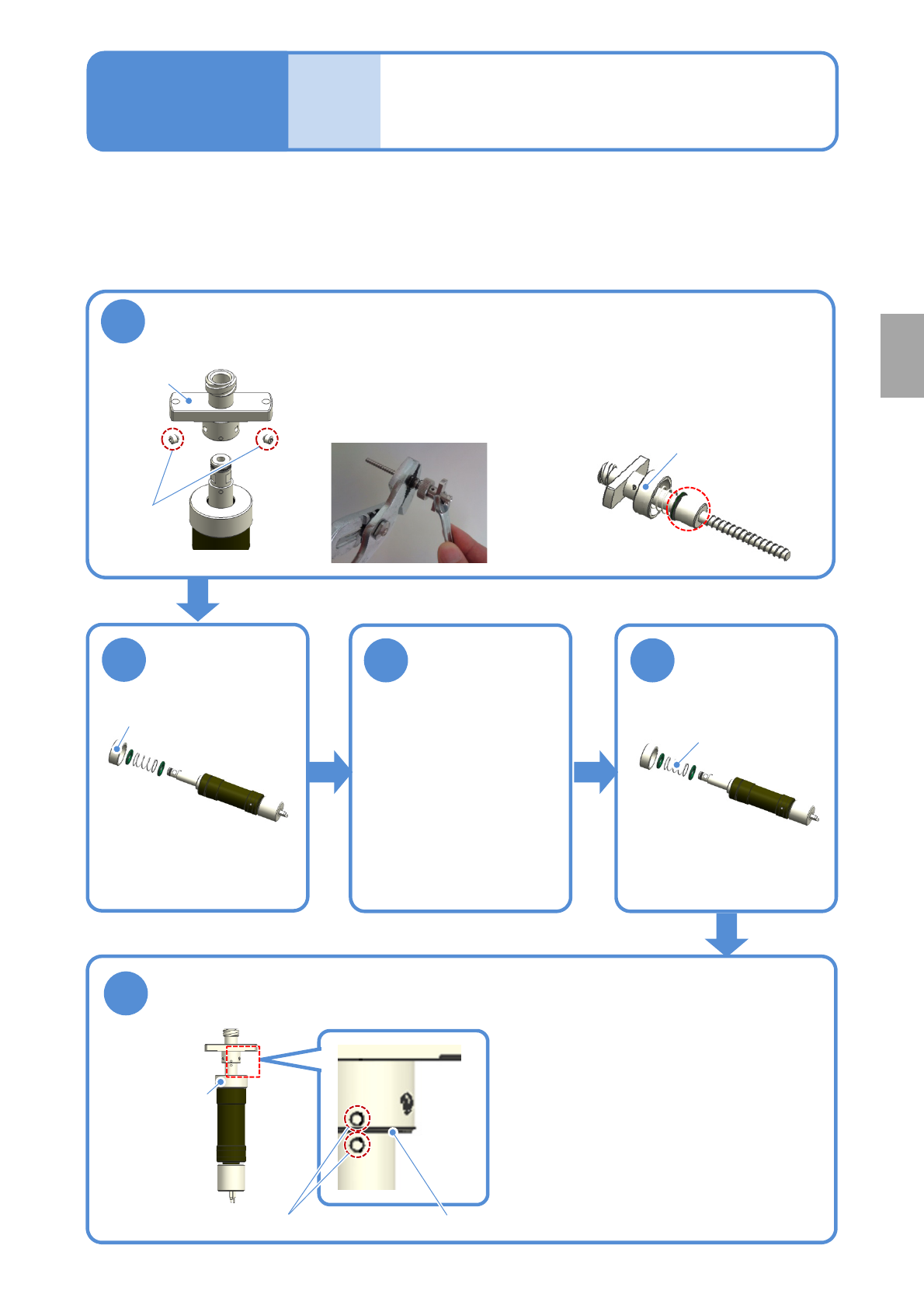 NPM-W 2 EJM7DC-MB-10M-00 每 1 8 0 0 0 小 时 保 养 定 期 检 查 弹簧的更换 1 ( 点胶头 ( 选购件 )) 10-3 -1 使用工具 : 六角扳手 所需时间 :10 分钟 ●消磨零部件请一定按照更新周期来 更换。 ●请事先卸下螺旋单元。 ( → P.4-2-5) 维修保养篇 10-3 1 拧松螺丝单元的固定螺丝后,卸下螺旋桨 固定螺丝 螺旋桨 ●如果不能取下螺旋桨部时,请用 钳子固定螺旋轴的中…