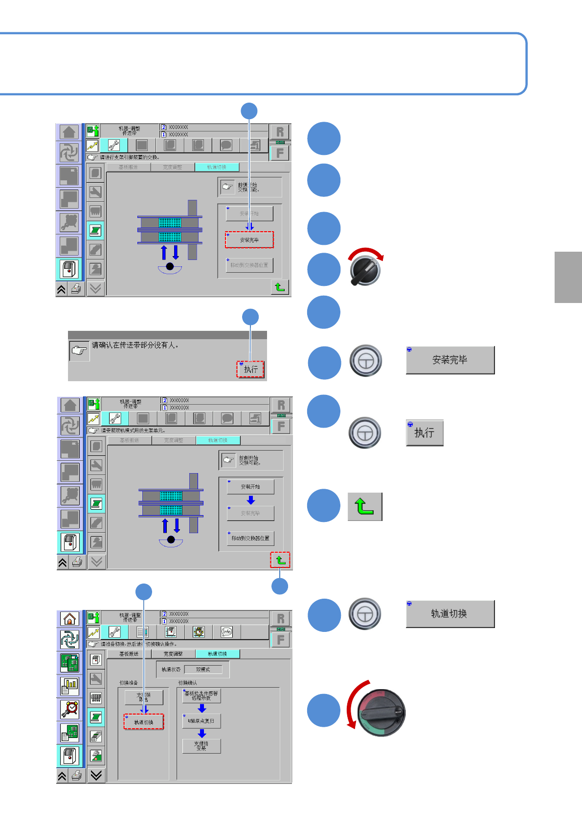 当设备为双传送带规格时,切换模式不仅能能作为单轨传送带而使用,而且还能作为双轨传送带而使用。