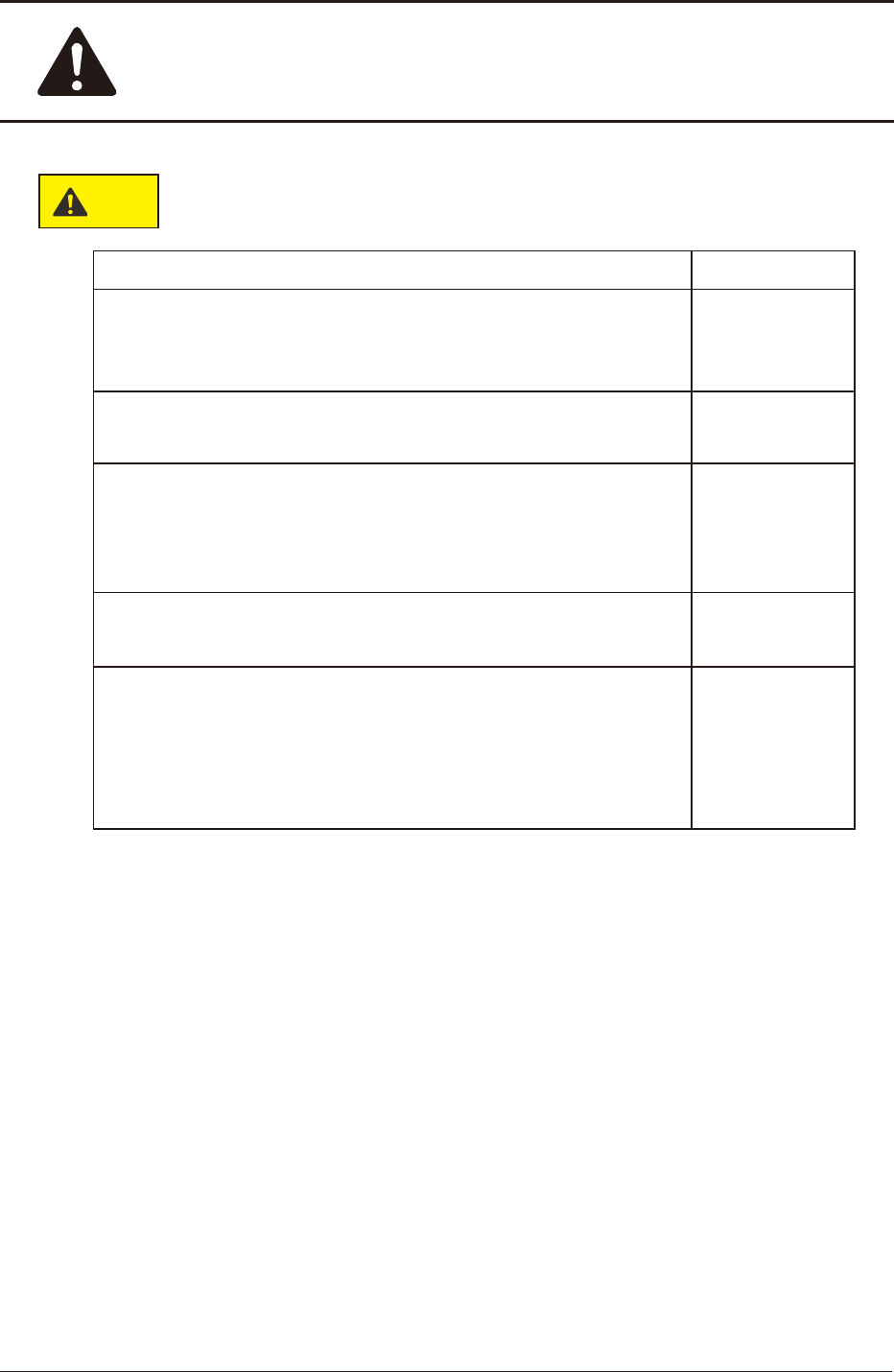 1OM-1752 安全 -9 1304-001 4. 使用说明书中的警告标示 警告 警告内容 记载页 进行生产运行和生产运行中,为防止危险,请关闭所有的开闭 盖。 ( 第一卷 ) 第一章 2.2.3 进行维护保养作业时,请拉下电闸后锁上挂锁。 ( 第一卷 ) 第一章 2.3.1 心脏起搏器安装者请不要在装置内操作。 本装置的 XY 横梁部使用强力永久磁铁。 心脏起搏器会受到磁性的影响导致重大事故。 ( 第一卷 ) 第一章 3.4 若不安…