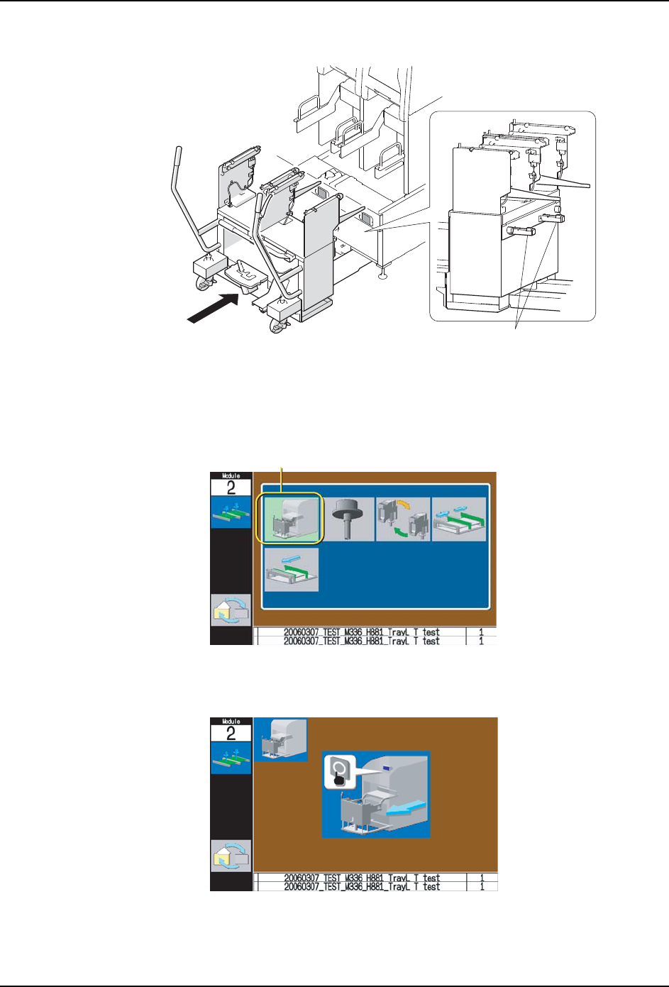 1. 请把安装料盘托架的模组的操作画面设置为 START 等候状态。