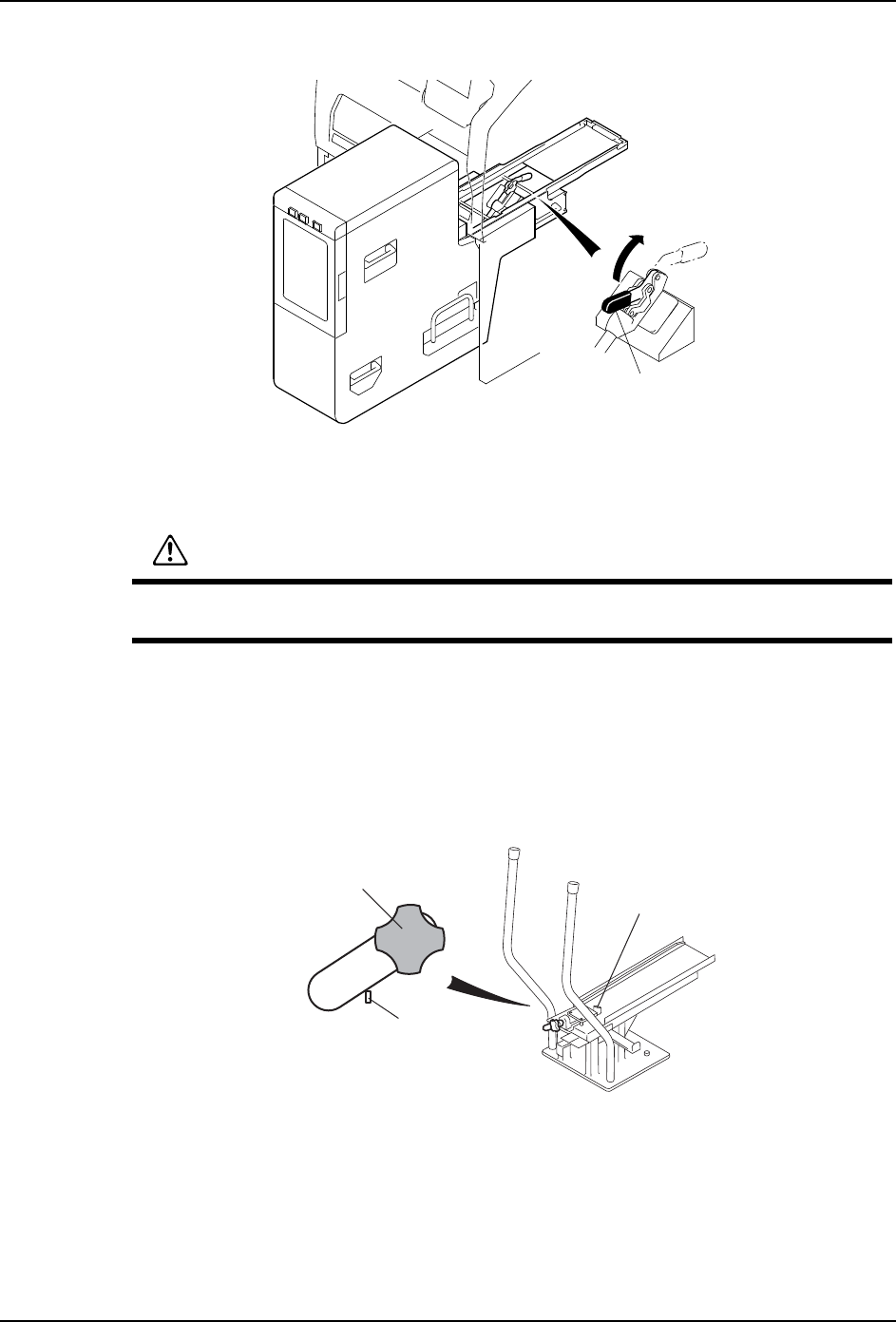 4. 转动摇柄调整台车的高度,使台车的轨道上面与料盘单元 -M 的底部接触。