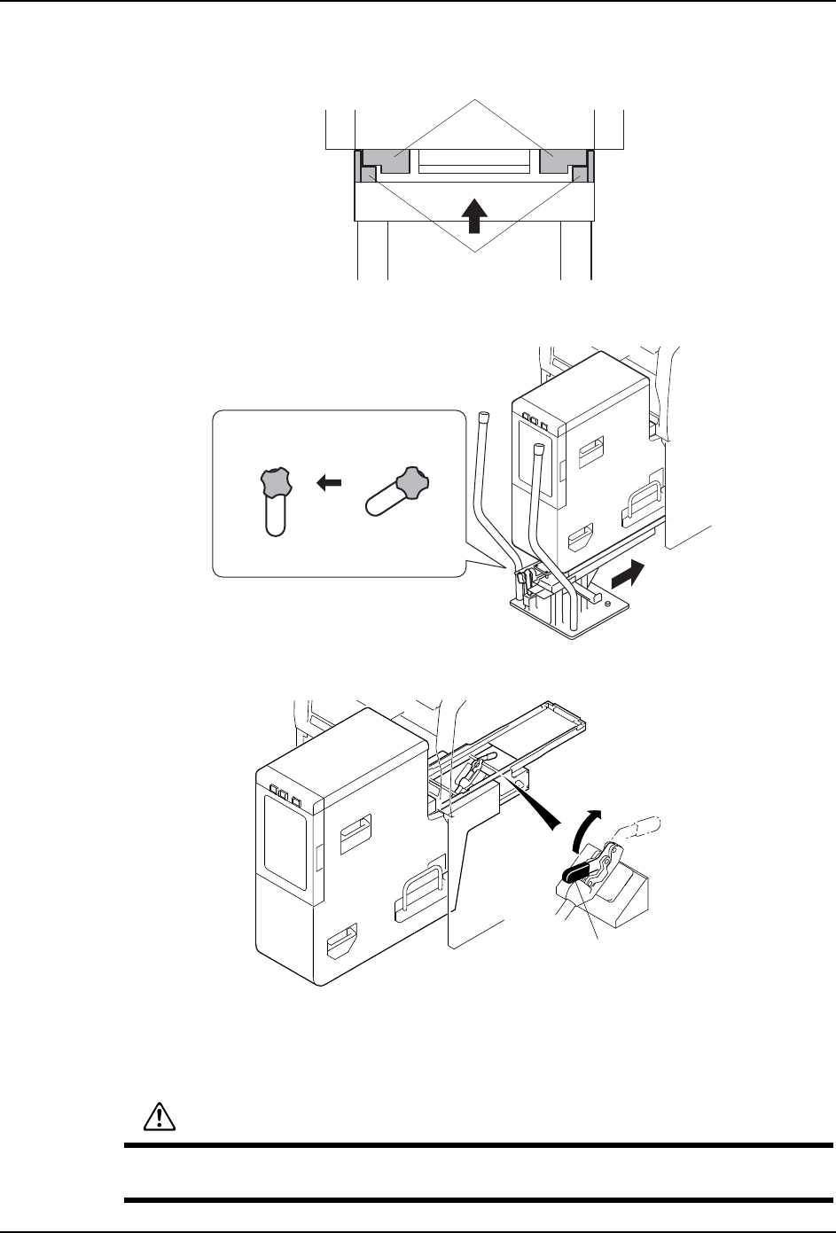 QD145-13 5. 基本操作 NXT II 机械手册 183 4. 转动摇柄调整台车的高度,使台车的轨道 上面与料盘单元 -M 的底部接触。 5. 把台车压入到模组中, 使其与料盘单元-M联结。 锁定旋钮(红色)自 动地移动到锁定位置。 6. 抬起料盘单元 -M 中央部的夹紧杆,松开模组侧的夹紧。 7. 将搭载料盘单 -M 的台车慢慢地从模组中拉开。 8. 为了安全,锁定台车的脚轮。 01NST -0391Sa ᭭Ⲭऩܗ0ջ䴶ⱘ䔼…