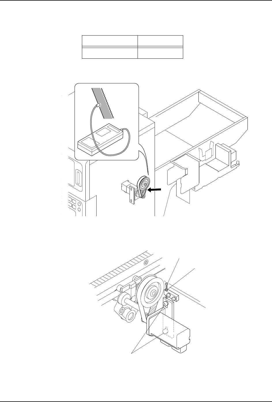 2. 测定值超过上述的范围时请调整皮带张力。请拧松马达的固定螺栓后旋转调整螺栓进行