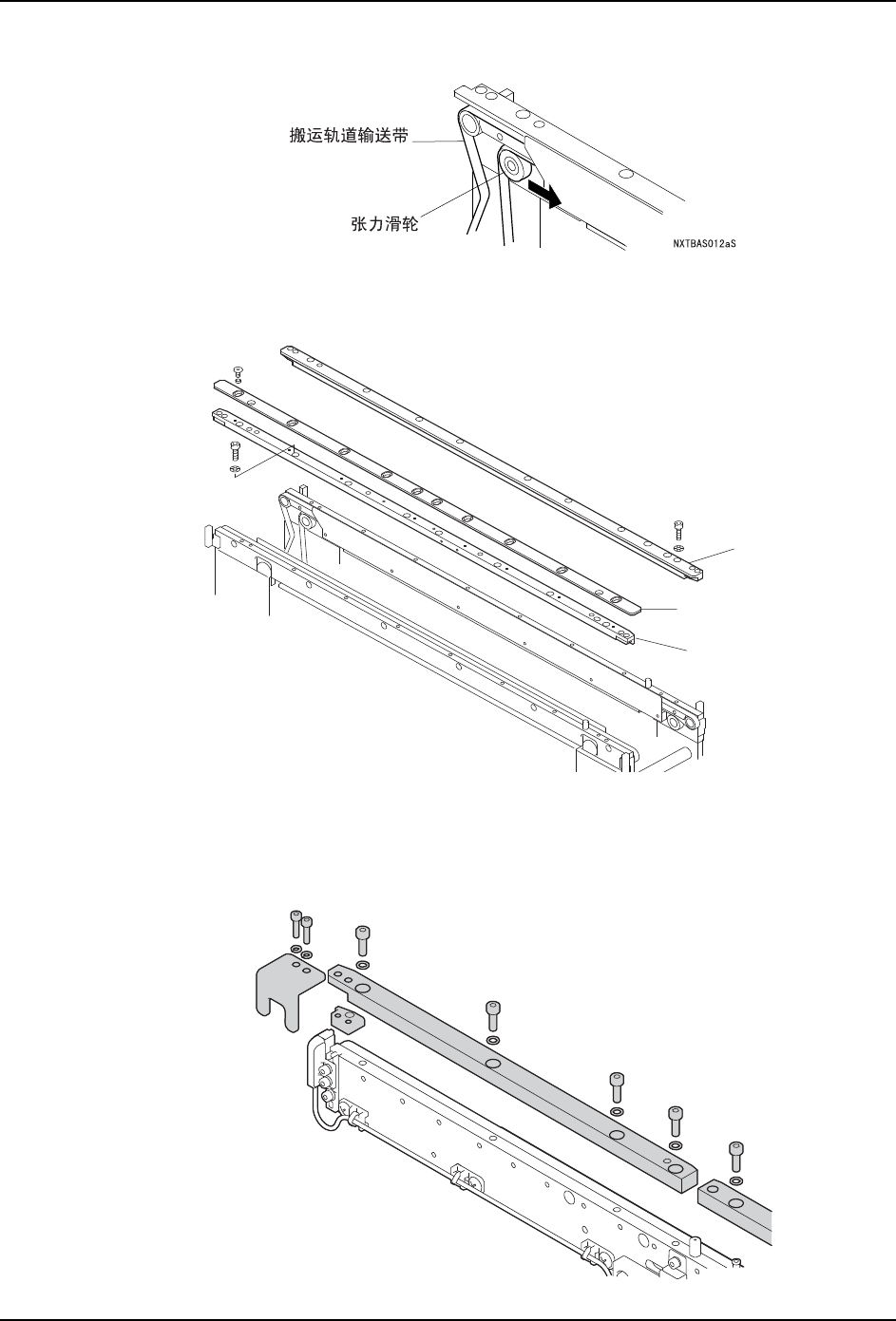7. 长搬运轨道的时候,请取下中央和左右两侧的电路板导轨。