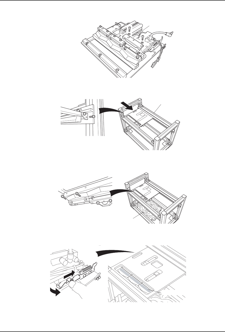 QD145-13 7. 消耗品的更换 NXT II 机械手册 411 7.28.3 更换方法 (A 型) 可动刀刃的拆除 1. 请取下废料带处理单元。( 详细参考 「8.4 废料带处理单元的 更换」 。) 2. 请拆除螺栓,取下盖板。 3. 请拆除螺栓,取下滑槽盖板。 4. 全部除去可动刀刃以及滑槽盖板上附有的油灰。 用一字型螺丝刀等前端扁平的工具抵住 油灰,用榔头敲打后除掉。 5. 请清扫除去油灰的表面。 工具 六角扳手套件 扳手套件…