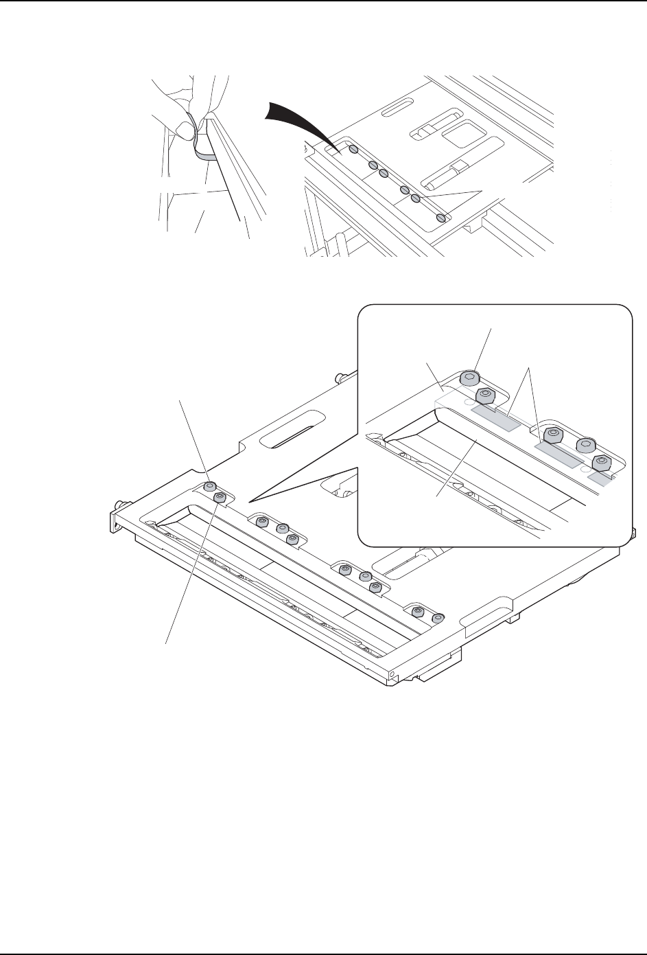 QD145-13 7. 消耗品的更换 NXT II 机械手册 417 8 . 把塞尺插入到可动刀刃和固定刀刃之间的间隙中调查间隙量 。 公差条件是在厚度为 0.02mm 可以进入,而在 0.10mm 不能进入。间隙量请在各个刀刃的 2 处进行确认。 9. 间隙量如果不能满足公差条件时,请调整 固定刀刃的高度。 a. 请松开未满足公差条件的测定位置周围的 固定刀刃的安装螺丝和调整螺丝的螺母。 b. 在固定刀刃安装螺丝附近的固定刀 刃和底座…