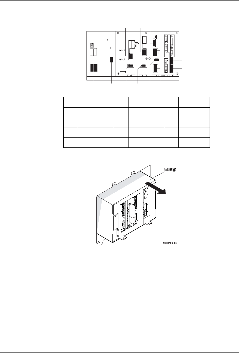 QD145-13 8. 部件的更换 NXT II 机械手册 435 8.5.3 M6-2 模组的时候 1. 将主电源开关 OFF,切断机器的电源。 2. 拧下螺丝 (4 根 ),拆除盖罩。 3. 将固定伺服箱的螺栓 (4 根 ) 拆下。 4. 拆除■所显示部分的插头。 No. 接插头名 N o. 接插头名 No. 接插头名 1 J1 5 11SA1 9 13SA1 M2 2 J2 6 11SA1 CN2 10 1 3SA1 PG2 3 …