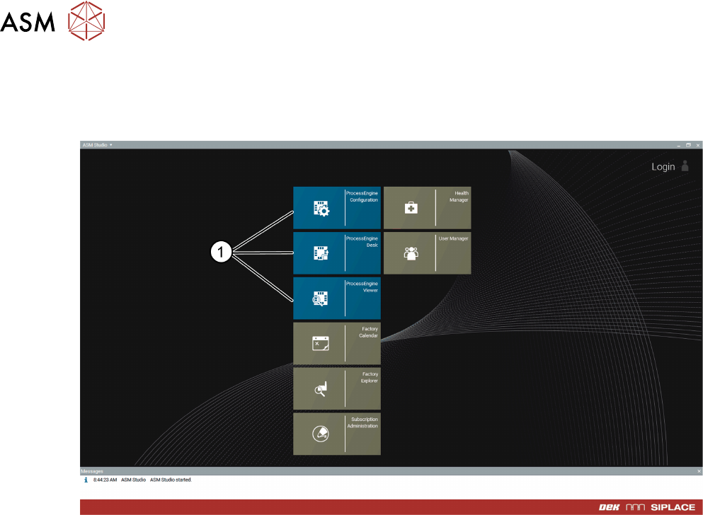 ASM Studio opens and displays the installed ASM ProcessEngine modules (1).