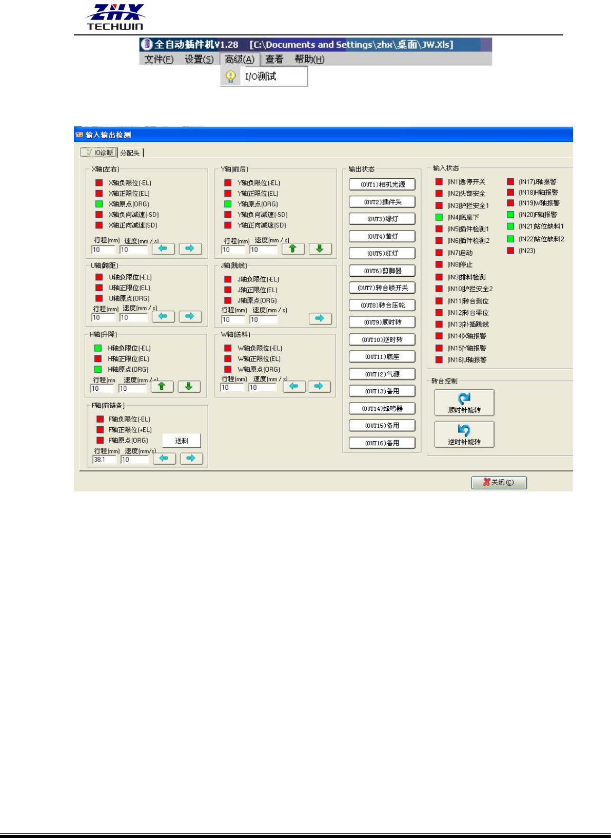 ZHX-A30-A S/-IN 自动卧式联 体插件机操作 说明书 深圳市中禾 旭精密机械有 限公司 http:// www .z kdip.com - 13 - 诊断是对输入、输出信号当前状态和伺服系统运动状态的诊断。 单步+诊断=通用输入信号、 通用输出信号、 专用输入信号、 站位驱动、 伺服系统、 转台等。 (A) 通用输 入信号 。 为各路光电、 磁感应、 安全开关等输入通道的当前信号状态的显示 (由 机器输入到电脑) 。下述状态…