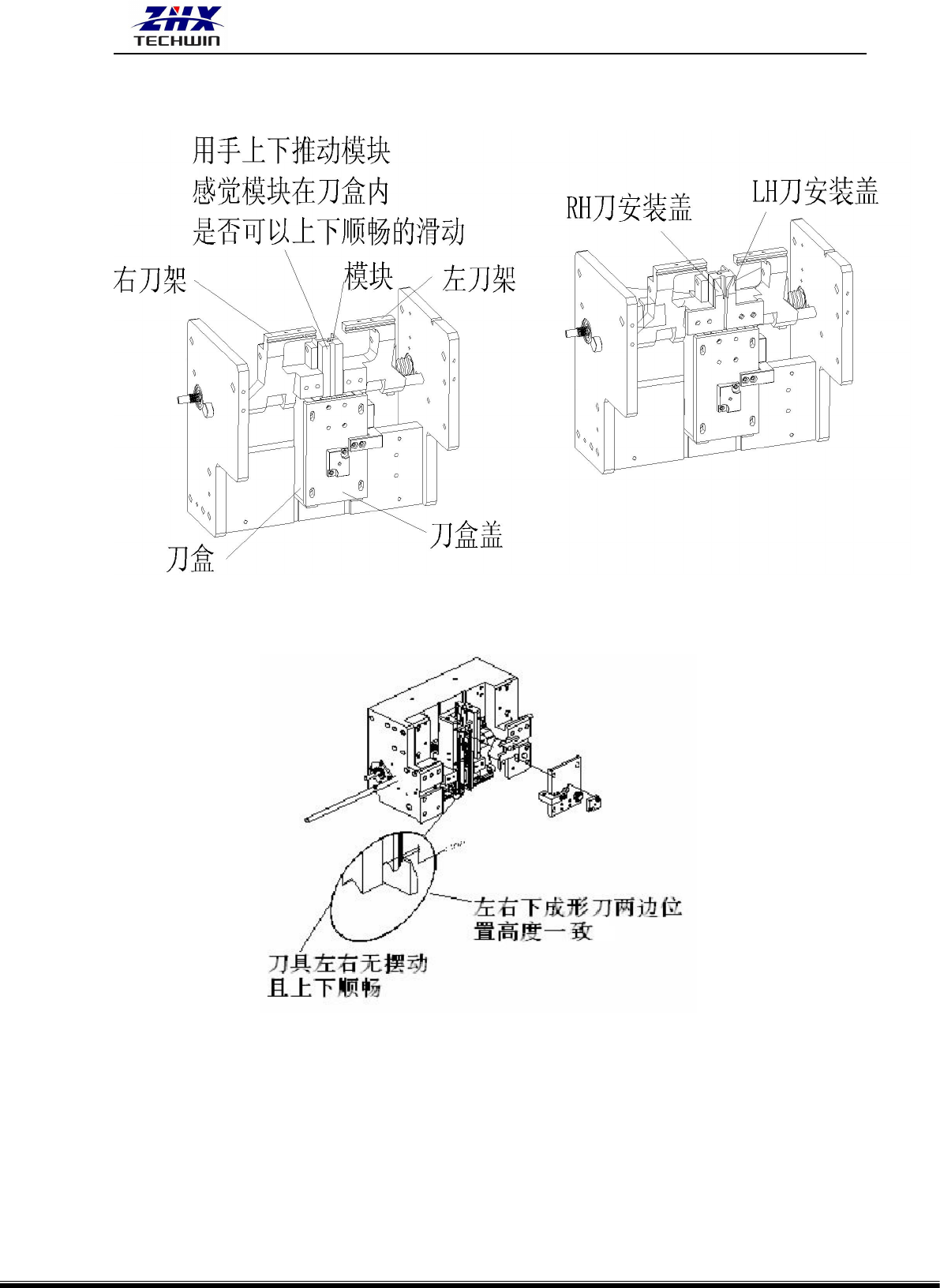 2、刀盒 WS1D-07001 与左、右刀架 LT1D-05030、LT1D-05031 的调整。