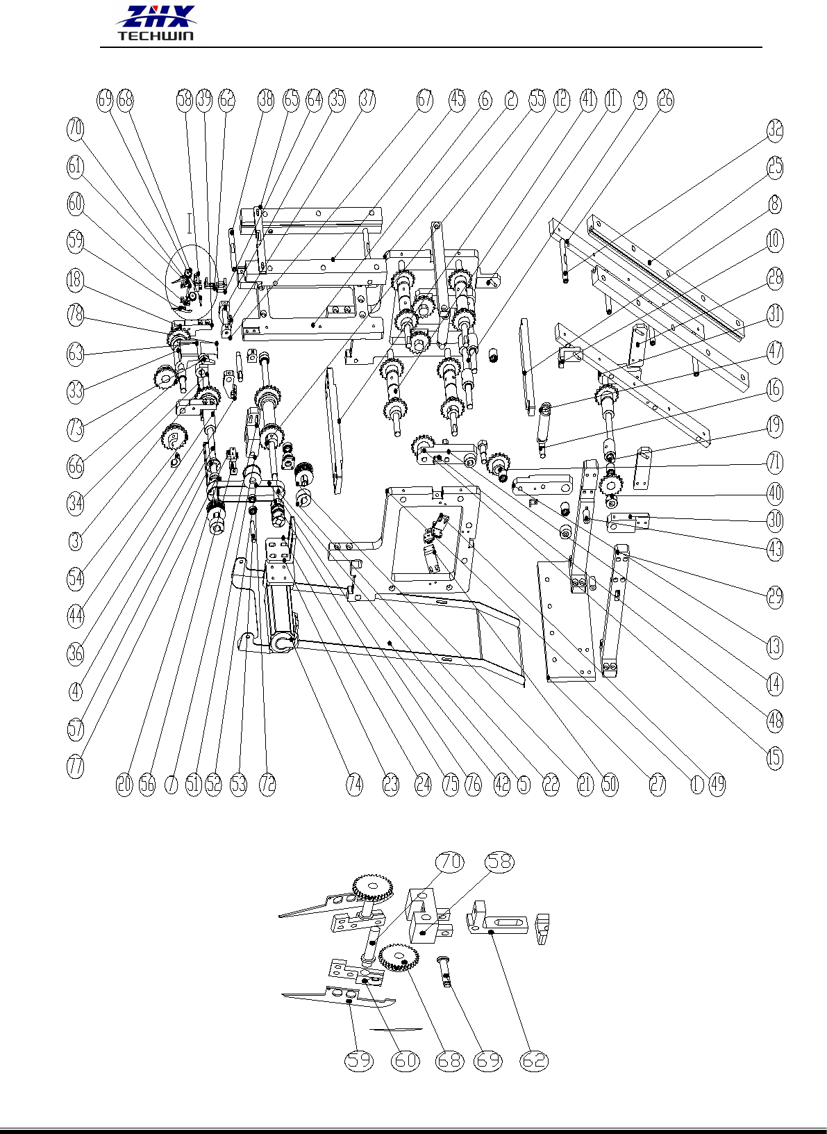 ZHX-A30-A S/-IN 自动卧式联 体插件机操作 说明书 深圳市中禾 旭精密机械有 限公司 http:// www .z kdip.com - 69 - 链条运输示意图 链条运输零件清单 序号 零件编号 零件名称 数量 单位 备注 1 LT1D-06065 齿轮固定板 1A 1 个 2 LT1D-06066 齿轮固定板 1B 1 个 3 LT1D-06048 压紧链轮片 2 个 4 LT1D-06004 324 轴 1 个 5 …