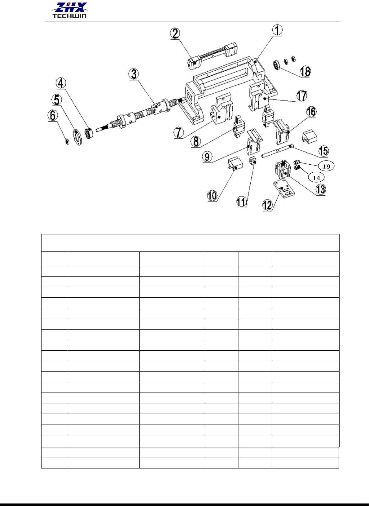 ZHX-A30-A S/-IN 自动卧式联 体插件机操作 说明书 深圳市中禾 旭精密机械有 限公司 http:// www .z kdip.com - 88 - 底座机构示意图 底座机构配 件物料清单 序号 零件名称 零件编号 数量 单位 备注 1 底座框架 WS1D-100 02 1 个 2 长直线导轨副 WJ-12306 1 个 EGH15SA2U183ZOC 3 U 轴左右旋丝杆 WS1D-060 01 1 个 BC2005-34…