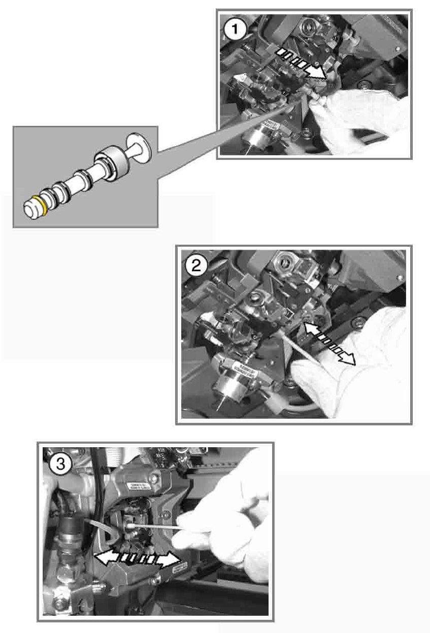 Berühren Sie beim Herausziehen des Ventilstößels nicht die kleinen Platinen. Die Ventilstößel