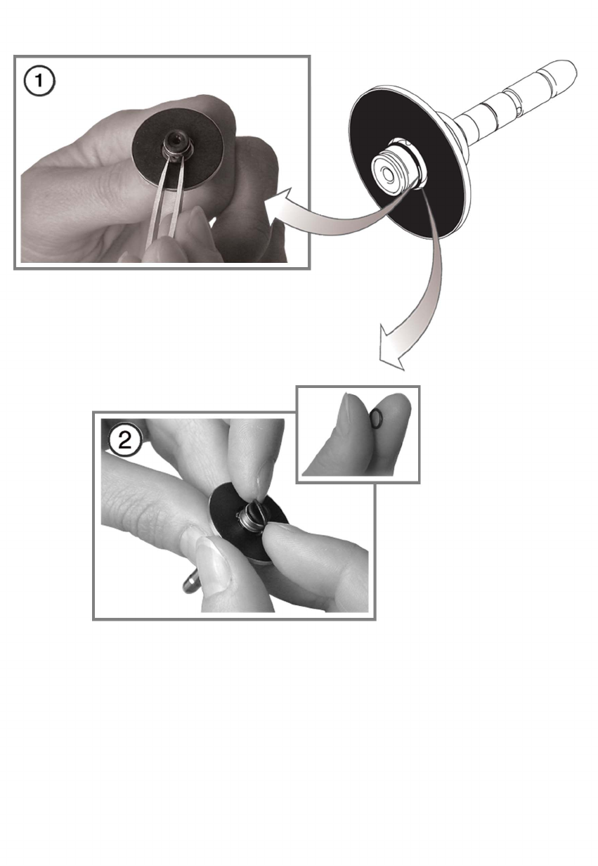 zwischen den Fingern). Ziehen Sie den O-Ring dann vorsichtig über den Saugteller in die Nut.