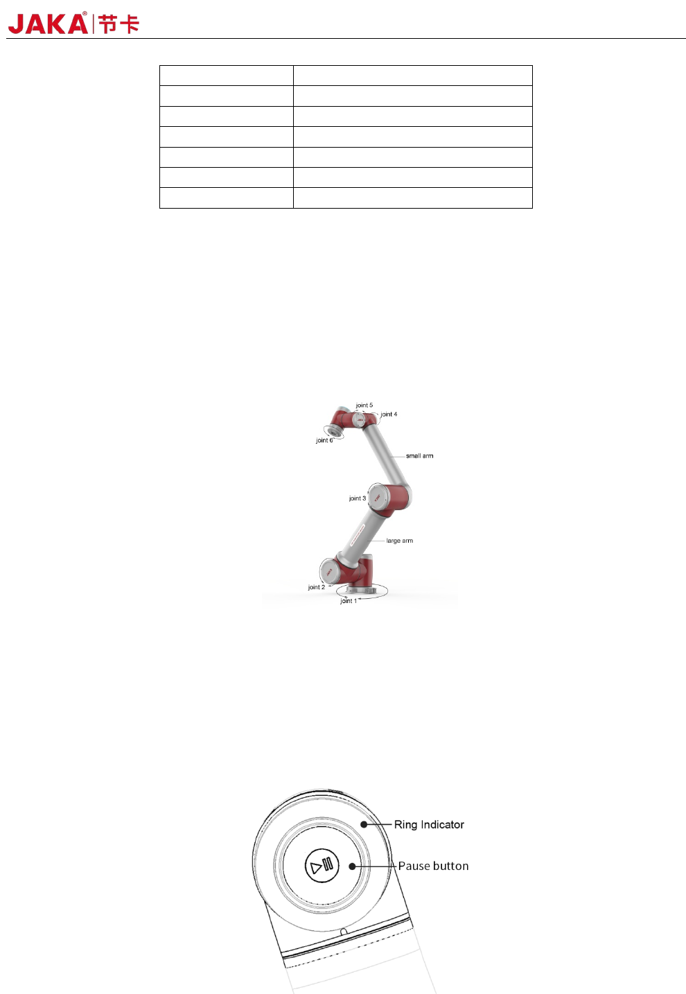 table 2-2. When the robot is running program, press the pause button could pause and resume the program.