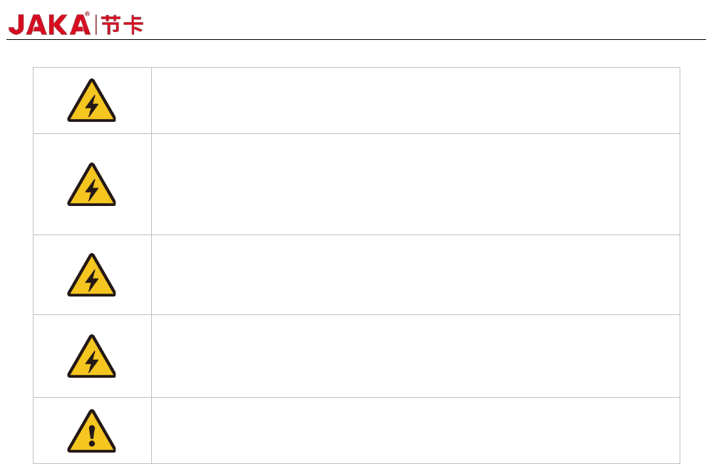 38 JAKA Zu 12 v 1.0 V erif ication number Inspection cycle Maintenance Inspecting Parts Inspecti ng Content Inspection/process ing method Daily Every 3 months Every 1 year 4 year 5 year 8 year 1 Surfaces Wheth er there i…