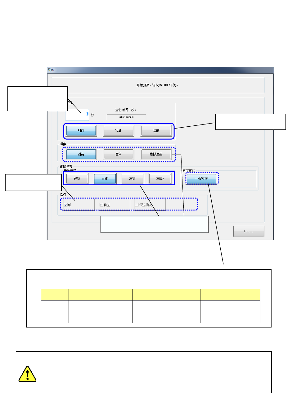 从[对角]、[四角]、[模拟生产]中选择预热运行的顺序。(初始设置为[对角])