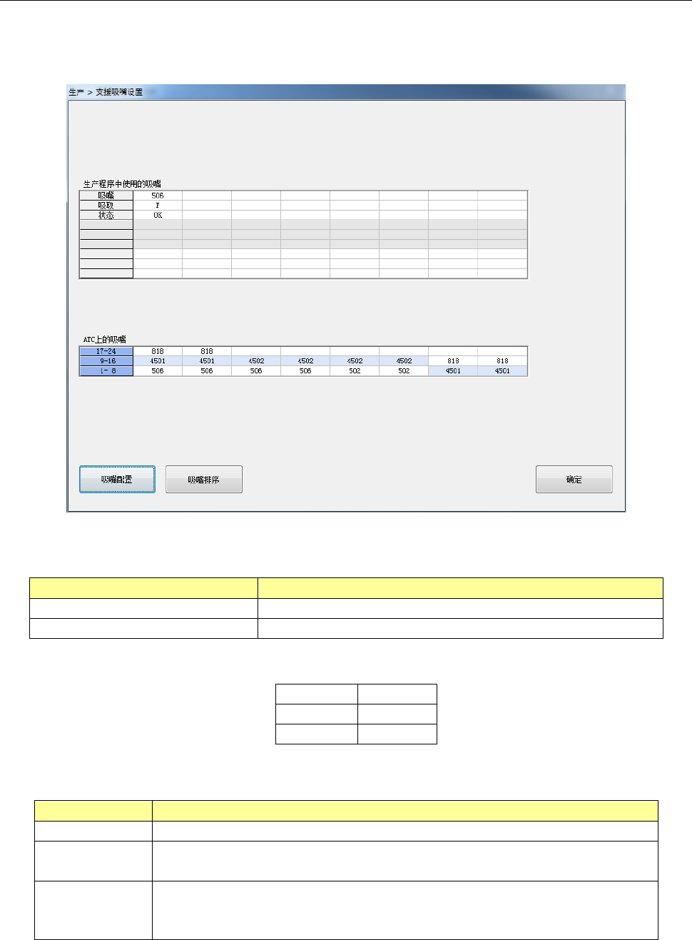 上的吸嘴号码的状态