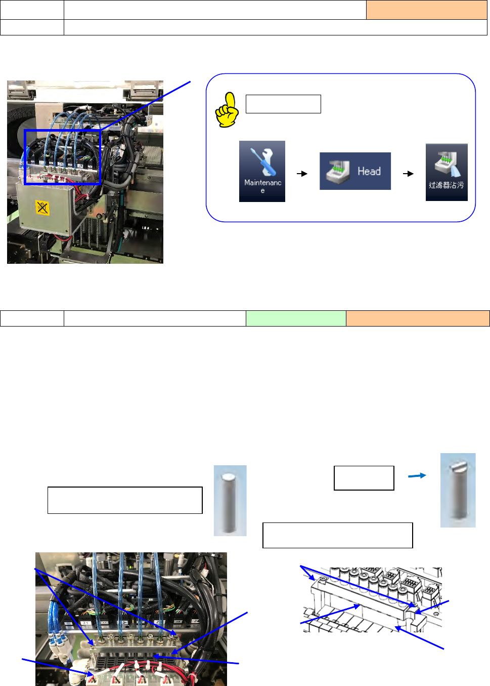 1) 请目检确认 Head 单元正面部位过滤器箱内的「空气过滤器①」没有脏污。