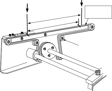 将传送轮固定在这两个标记变为 201 mm 的位置。