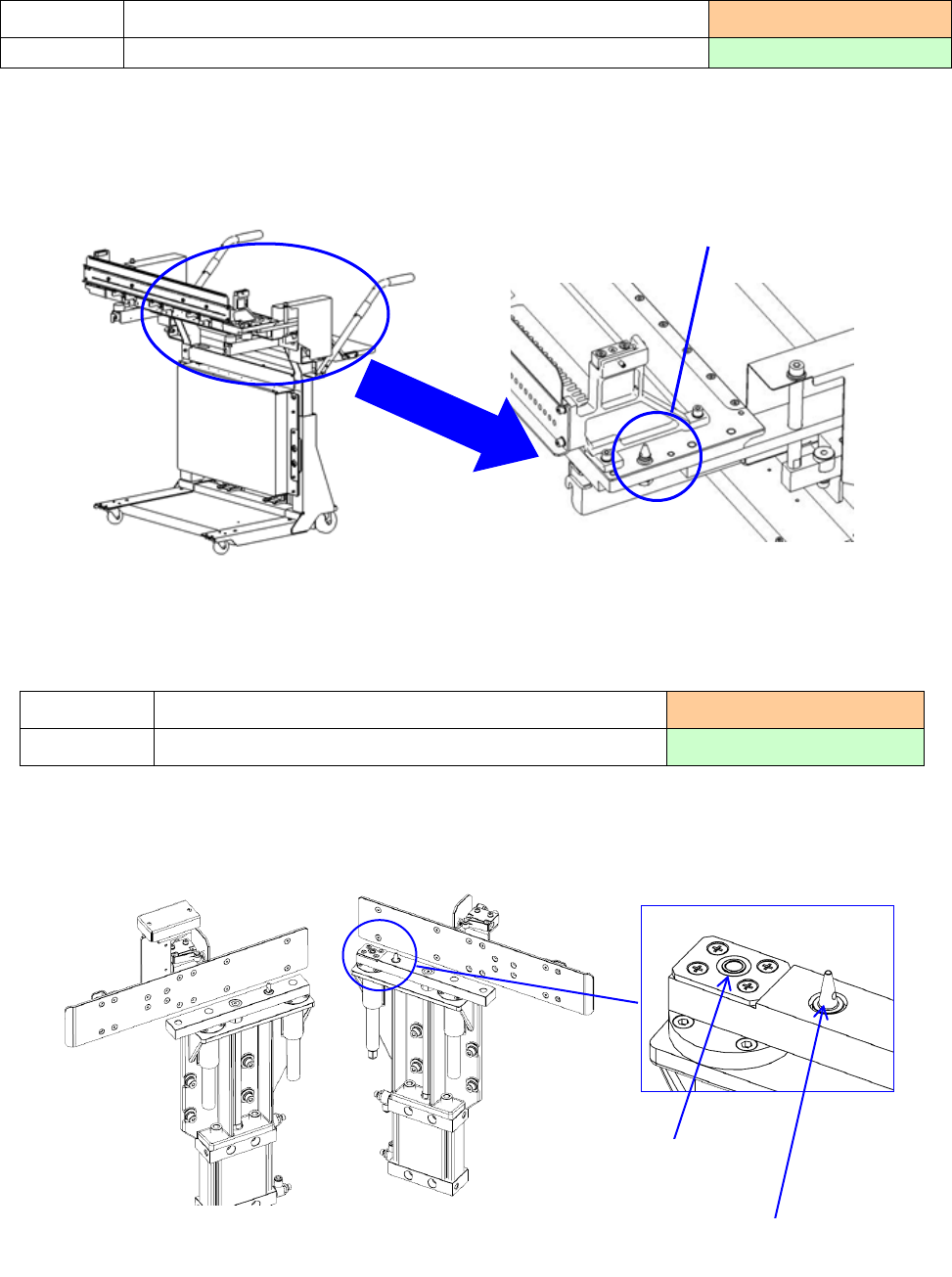 2) 请确认「台架定位销」(两侧)附近没有芯片元件等异物。