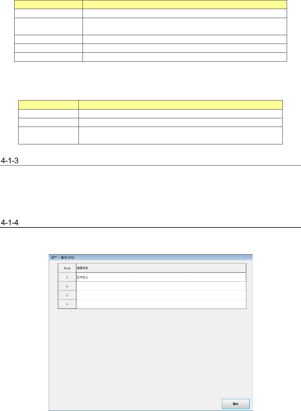 操作手册 4-4 (1) 错误 H ead 一览 显示 发生错误 的 Head 一览。 项目 内容 He ad 显示 Hea d 号。 错误 内容 与重试列表显示 的大区分、小区 分 相同。 详细情况请参见 「 2-10-4- 2 显示 错误 内容(大区分) 」 。 详细情况请参见 「 2-10-4- 2 显示 错误内容(小 区分) 」 。 按下 [ 确定 ] 按钮,则退出 详细画面, 返回到暂 停画面。