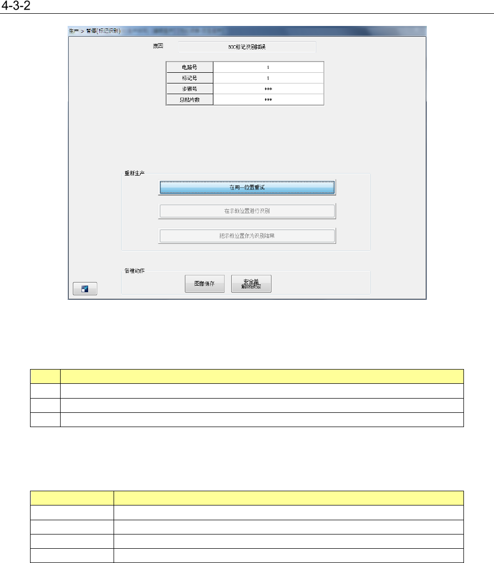 如果在 BOC 标记、基准领域标记的识别中发生识别错误,则会暂停生产并显示下图。