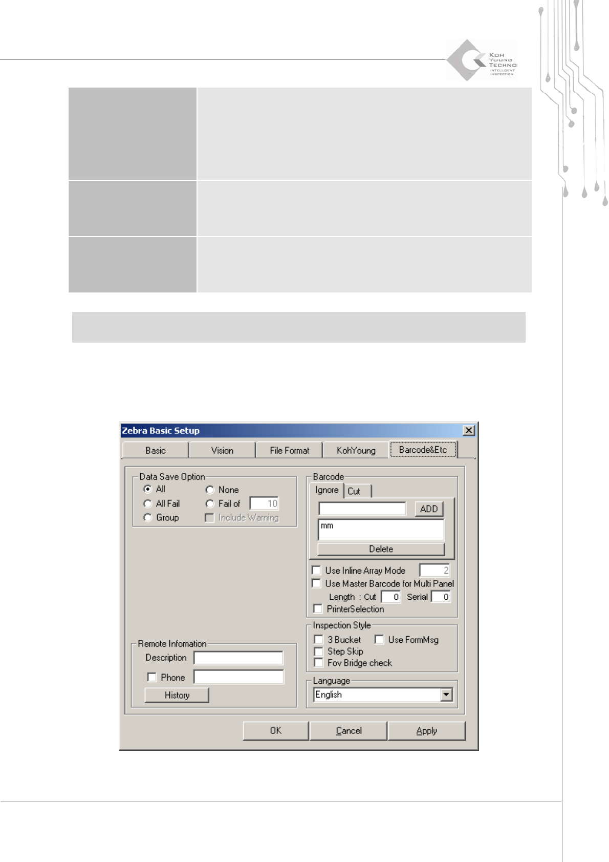 4.3.6.4. “Setup”(设置)中的“Koh Young”对话框