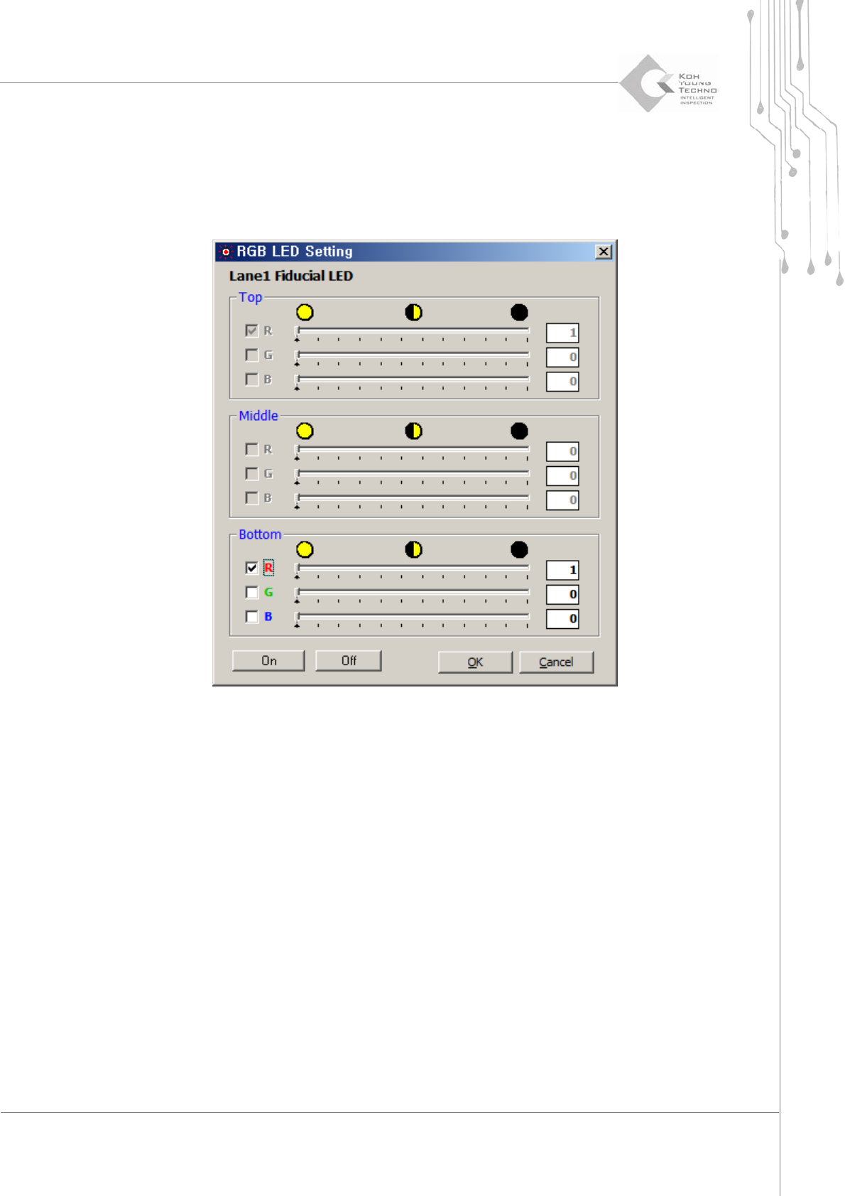在“KYConfig”(KY 配置)中停用的 LED 在此窗口中也停用。要在此窗口中调整的 LED 名称