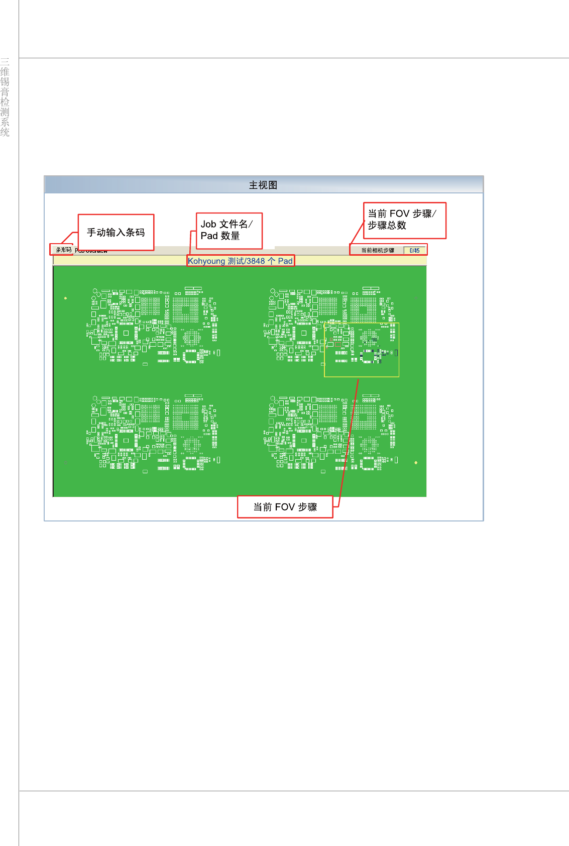 显示 PCB 的当前检测步骤数(FOV 步骤)和检测的步骤总数。