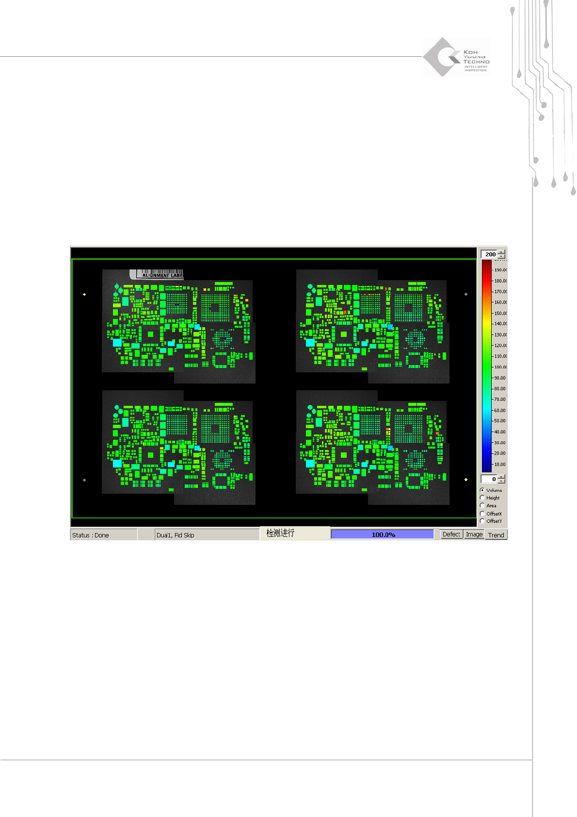PCB 趋势。“Volume”(体积)、“Height”(高度)、“A r e a ” (面积)、“OffsetX”(X 偏移)和